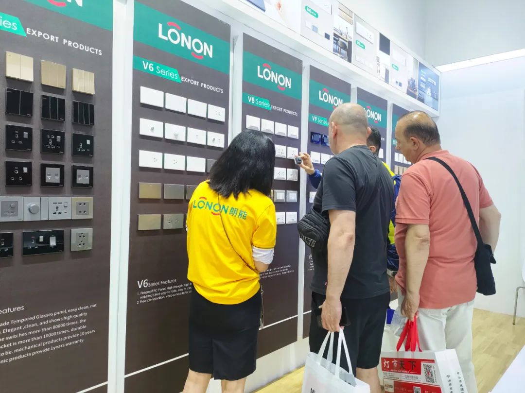 同聲相應(yīng),同氣相求。在展會(huì)上,朗能展示了五款國(guó)內(nèi)開(kāi)關(guān)(A3、A5、A8、A9、軌道插座),產(chǎn)品的諸多優(yōu)點(diǎn)和賣(mài)點(diǎn),同樣引發(fā)了廣大商家的極高熱情,前來(lái)鑒賞、了解和咨詢(xún)合作的商家絡(luò)繹不絕。這是朗能開(kāi)關(guān)回歸公司之后,首次在大型專(zhuān)業(yè)展會(huì)上亮相,出眾、出彩、出圈。